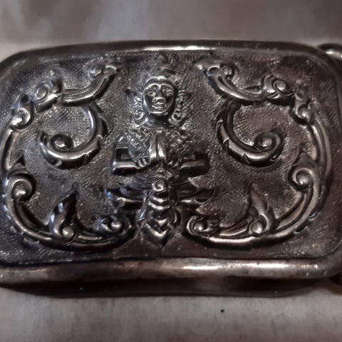Andet smykke, sølv, Et spænde i sølv uden stempler. Det er antikt. Vejer ca 13,5 gram og måler længde 6,5 cm