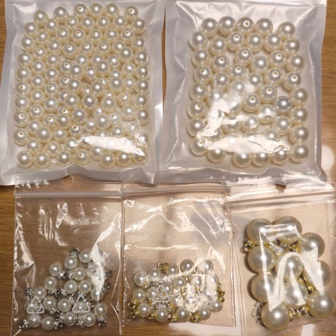 Perler, Uåbnet pose dråbeformede perler fra Tiger