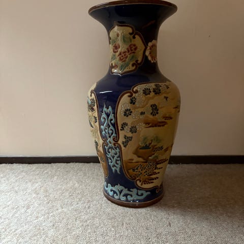 Høj vase, Høj vase, 55 cm. Lavet i sort glas. Dekoration af grene medfølger, men kan bruges uden.