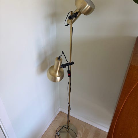 Fin gammel messing standerlampe med skærm. Fungerer helt som den skal.