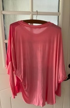 Ukendt mærke bluse til kvinder i størrelse 44. Denne bluse er pink med et sommerfuglemotiv. Perfekt til afslappet brug eller som en del af en lag-på-lag stil.