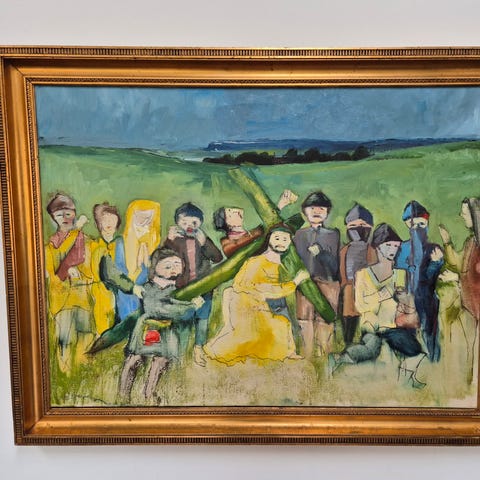 Andet, Arne Madsen, Arne Madsen 1911-1991, oliepastel, 30x40 cm, præst Karlebo, Årsdale, Bornholm, signeret AM, Bornholms kunsthandel er eb kunsthandel på ferie Øen Bornholm.