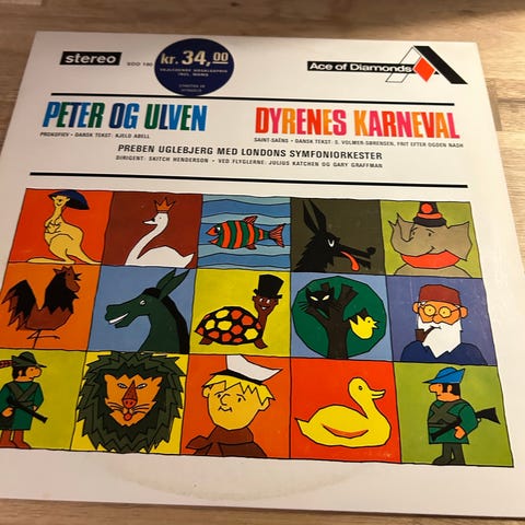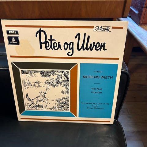 LP, Prokofieff/Mogens Wieth, Peter og Ulven, Børne-LP, Jeg har ingen afspiller, så jeg kan ikke oplyse noget sikkert om afspilningskvaliteten. Men der ses ingen ridser.