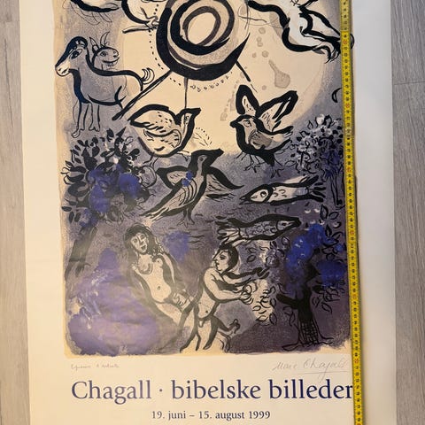 Plakat, Chagall, motiv: Kæreste par og engel, b: 41 h: 51, I glas ramme. Kan sendes.kan evt afhentes i Århus eller Greve