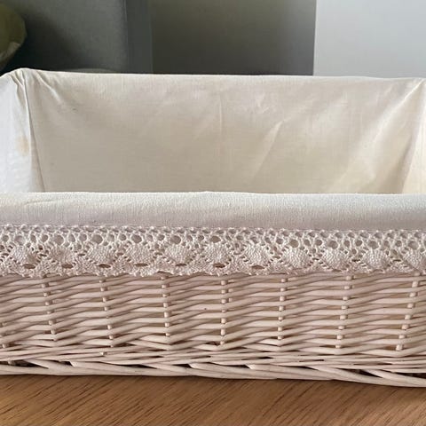 Mål: 31 cm x 29 cm og høj 17 cm, Hvid flet kurv