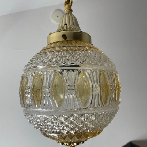 Anden arkitekt, loftslampe, Smuk antik / vintage lampe loftslampe i glas og messing.