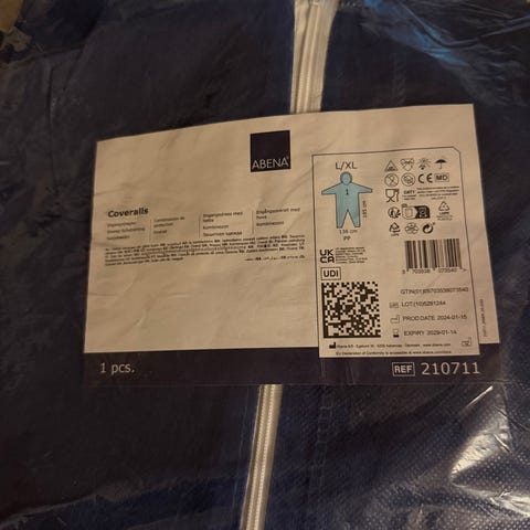 Engangsdragter, Str.180cm med limet forsegling af lynlås, se billeder.10 stk sælges samlet.