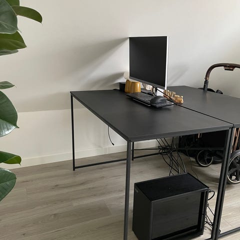 Skrive-/computerbord, AJ produkter, b: 120 d: 80, Antrasit grå bordplade . KUN BORDPLADE UDEN UNDERSTEL. Helt ny og ubrugt. Med 2 kabel gennmføringer til kabler.