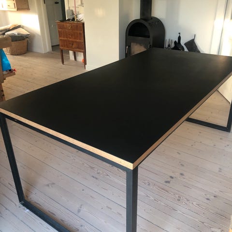 Spisebord, Metalben og melamin , Kinnarps, b: 110 l: 110, Smart sort spisebord elller mødebord. Brugt men fremstår fint.