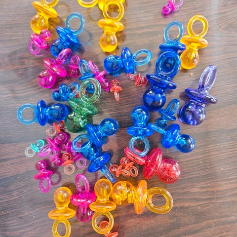 Vintage legetøj fra 70érne, som dengang blev brugt til halskæder, nøgleringe og påsyning på tøj og tasker