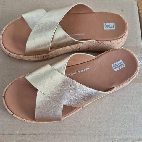 Sandaler, str. 39, Fitflop, Gl. Rosa og Guld, Læder or Kork, Næsten som ny, Lækker Fitflop sandal med guld i læder og korken.