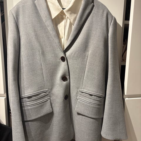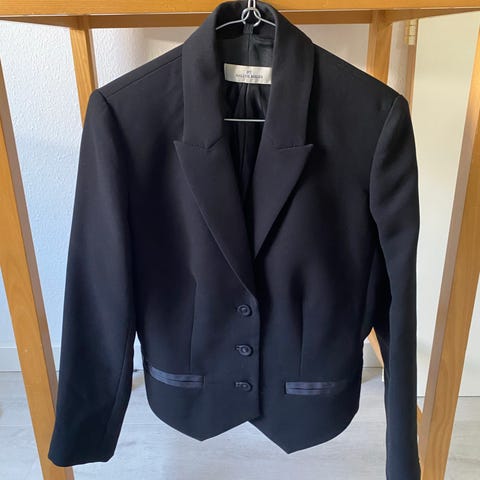 Blazer, str. 40, Malene Birger, Sort ( lyset falder, så den ser lidt falmet ud), 97% cotton ect ( se billede), Næsten som ny, Rigtig fin sort blazer i fløjl og med satin bånd rundt langs kraven.