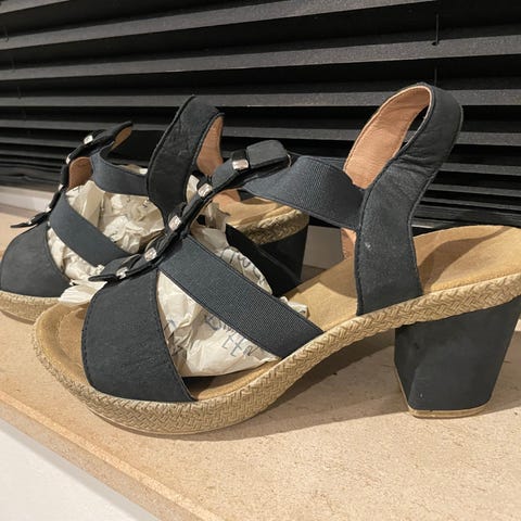 I sort ruskinds/velour, med elastikremme og burretape lukning.