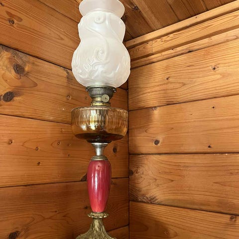 Petroleums lampe, Metal , 30 år gl., Jubilæum gave fra Fritz Hansen-patruljen lampe