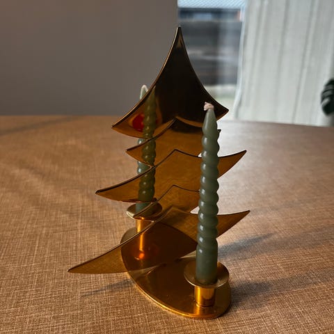 Andreas Mikkelsen messing juletræ med to lyseholdere