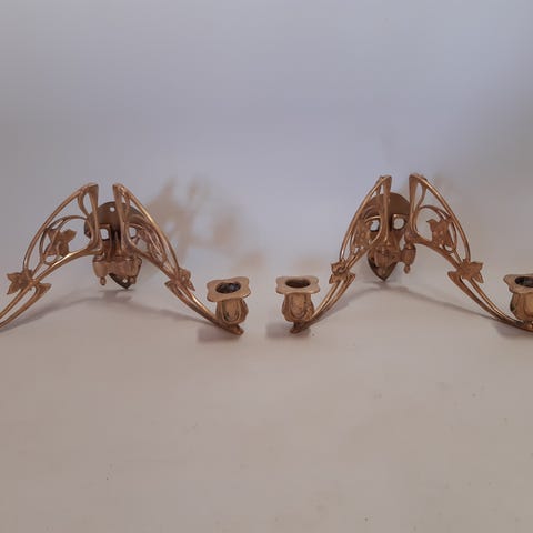 Væglampe, 2 lysestager med kobberskåle højde 13 cm