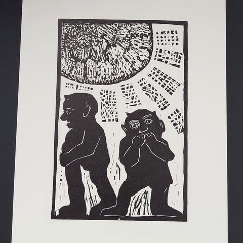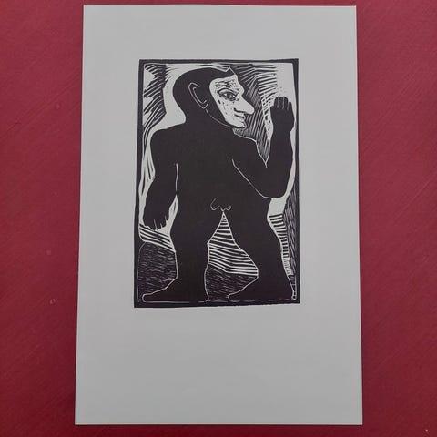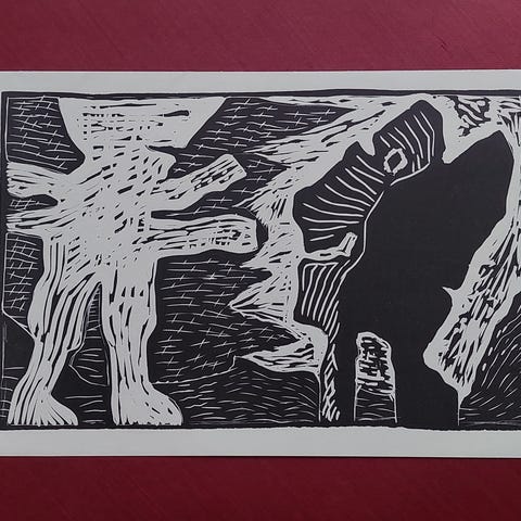 Spændende linoleumssnit af kunstneren Herman Stilling.
