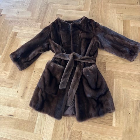 Pels, str. 40, Brdr. Alex Petersen, København, Smuk cognacfarvet, Minkpels, Næsten som ny, Smukkeste minkfrakke med dybe lommer og fine knapper.