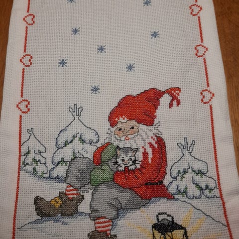 Broderet jule løber med nisse
