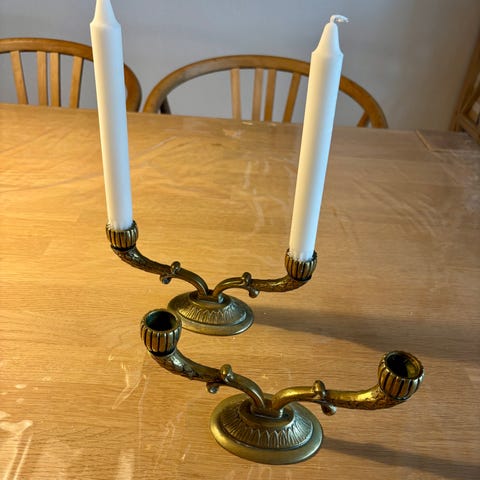 Lysestager, Ukendt, 2 gråblå/brune lysestager. De måler 7,5 x7 x 8,5 cm. Intakte. Nyprisen var 39,95 kr pr styk