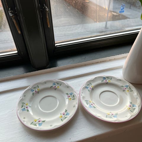 Porcelæn, Kopper og tallerkener, Smukt lyserødt stel