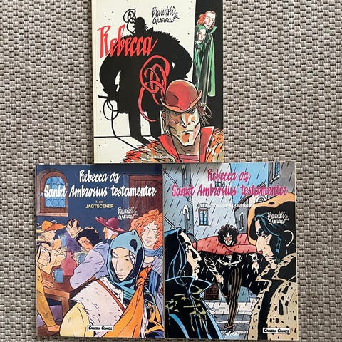 Rebecca og Sankt Ambrosius’ testamente, Brandoli og Queirolo, Tegneserie, Sælges samlet. God stand. Navn på indersiden. Sender ikke for køb under 200 kr.