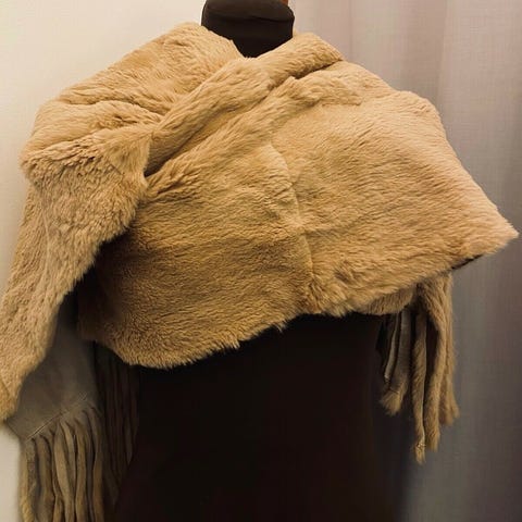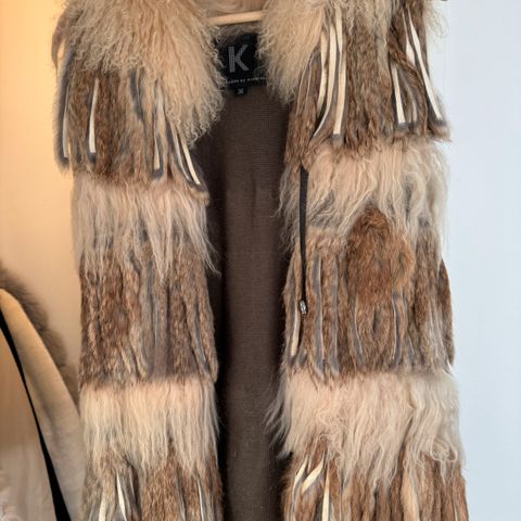 Pels, Vest, Kopenhagen by Andersen, str. 36, Creme brun, Pels , Næsten som ny, Smuk boheme kaninpels og tibetansk lam syet på strikvest