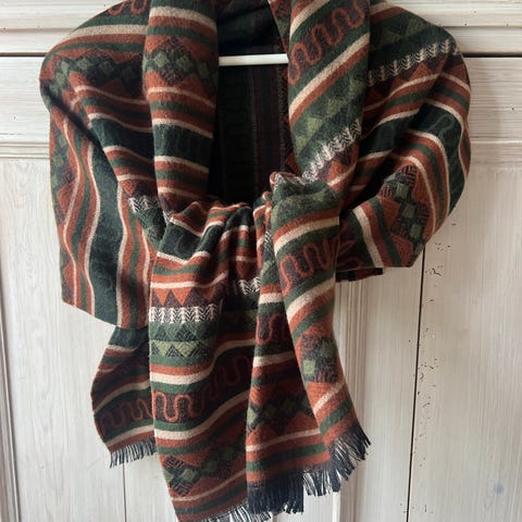 Sjal, Italiensk, str. Ca. 40x 190, 90 % uld 10 % kunstfiber, Ubrugt, Italiensk sjal i 90% uld. Kan håndvaskes. Sendes ikke. Betales kontant eller via mobilepay.