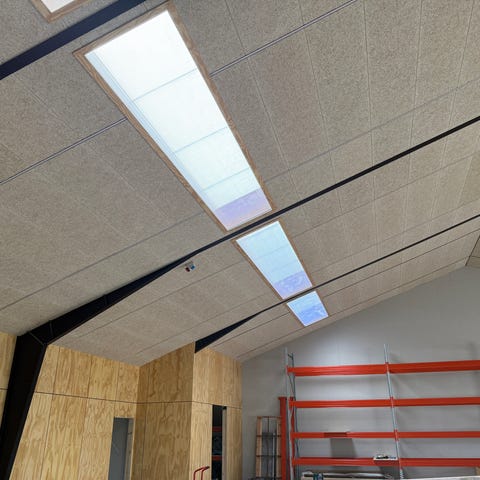 Troldtekt(fibrotek multifin/xtrafin) ), sort eller hvidmalede fibrotek træbeton loftplader helt magen til Troldtekt ultrafin. 2,5x 60x120 5 mm fas