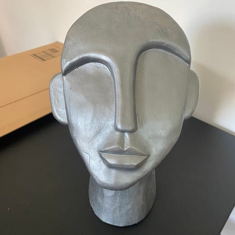 Statue, Statue af keramik af omfavnende mennesker i lerbrun farve.