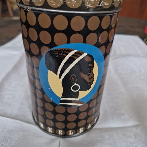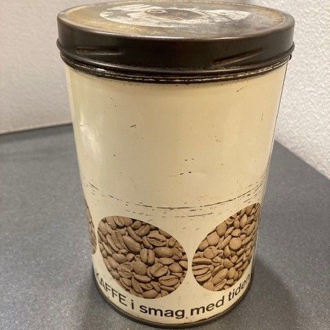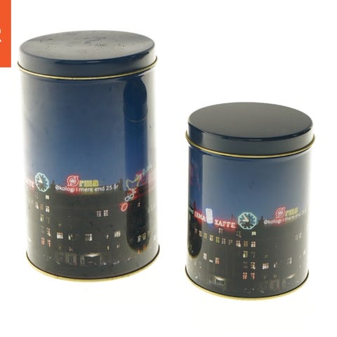 Kaffedåse og tedåse hver med to låg med kaffepigen fra FDB / COOP.