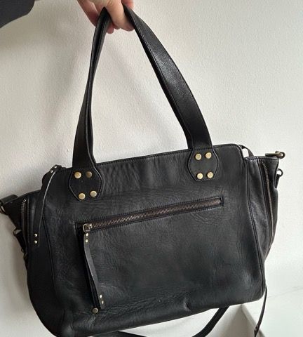 Lækker skuldertaske fra Becksøndergaard i læder. Kan bruges på tværs og kan derfor også bruges som taske på ryggen på cykel. Ikke brugt mange gange. 2 store lommer og indvendige lommer. Den måler 32 cm i højden og 43 cm i bredden.