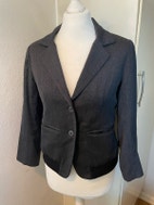 Kort mørkegrå / koksgrå / antracit grå jakke med sort strik rib kant i str 38