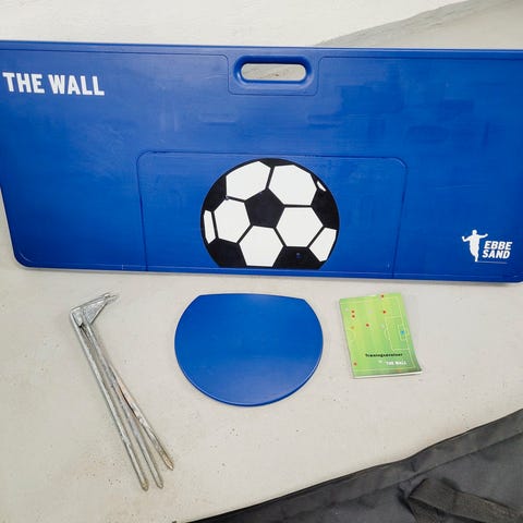Sælges meget billigt. Alt inkluderet. Mega vedligeholdt og næsten ubrugt. Pris 1450kr. Ebbe Sand The Wall - Fodbold-rebound-bræt Om Ebbe: Ebbe Sand blev anerkendt for sin skarpe målnæse og tekniske kunnen, hvilket gjorde ham til en af Danmarks mest talentfulde angribere gennem tiderne. Han opnåede bemærkelsesværdige præstationer som nøglespiller for FC Schalke 04 og Brøndby IF herunder afgørende Champions League mål mod Deportivo La Coruña og bidrag til Brøndby IF's danske Superliga mesterskab i 1996-1997. Produkt info: Forbedr dit jordarbejde med Ebbe Sand The Wall - et innovativt fodbold-rebound-bræt fra firmaet Ebbesandsport. Dette rebound-bræt er designet til at hjælpe fodboldspillere med at finjustere deres tekniske færdigheder og forbedre deres jordarbejde på banen. Variabel hældning og aftagelig del: The Wall består af to primære dele. En flad del med variabel hældning, som kan justeres til 90, 105 og 125°, giver dig mulighed for at tilpasse træningen og øge sværhedsgraden gradvist. Den anden del er en sfærisk og aftagelig komponent, der giver en uforudsigelig boldrebound, hvilket udfordrer spillernes evne til at reagere hurtigt og præcist. Fremmer re-atletisering og tekniske bevægelser: Ebbe Sand The Wall er ideel til re-atletisering, da den hjælper med at forbedre spillerens bevægelighed, koordination og boldkontrol. Dette rebound-bræt er også perfekt til at øve tekniske bevægelser, herunder præcise pasninger på jorden. Uanset om du er en professionel fodboldspiller, amatør, eller en del af en fodboldklub, sportsforening eller skole, vil dette rebound-bræt hjælpe dig med at udvikle dine færdigheder. Robust konstruktion og inkluderet tilbehør: The Wall er fremstillet af holdbare materialer, der sikrer langvarig ydeevne. Den leveres med stålpigge, der giver ekstra stabilitet under træningssessionerne. Målene på 108 x 45 cm giver tilstrækkelig overflade til at øve forskellige teknikker og øvelser. Sjælden ek