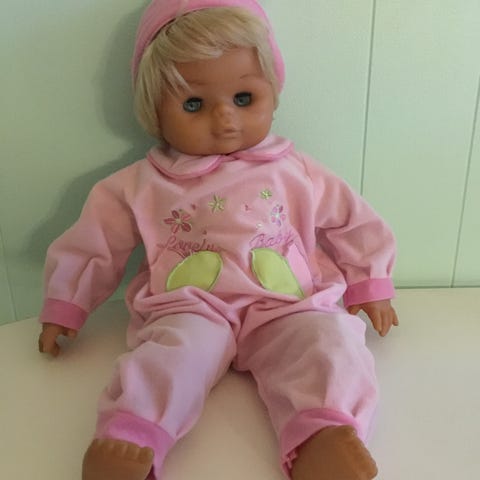 Dukken åbner og lukket øjnene når man tager den op/lægger den ned.
