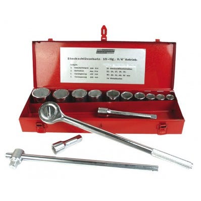 Der er 53stk toppe og 11stk rørnøgler i mm, fra 6-32mm, samt 30stk toppe og 3stk gaffelnøgler i tommer,
