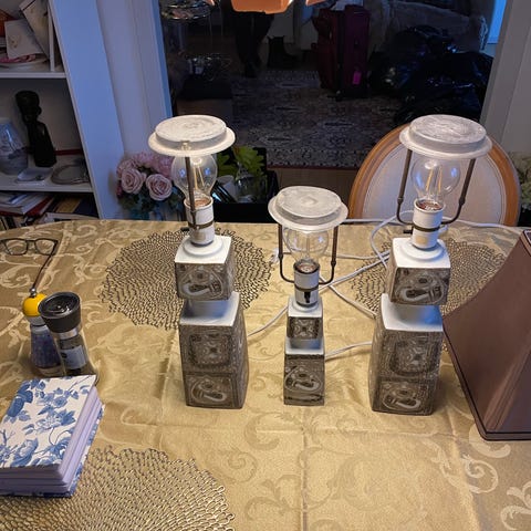 Lamperne afhentes ved Bjæverskov, vasen kan sendes.....