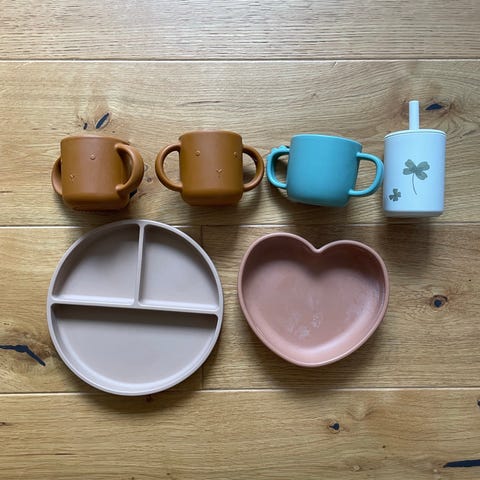 Børneservice, Tallerken og bestik, Kibouki, Sjov Kibouki tallerken med skål bestik og kop sælges for 60 kr