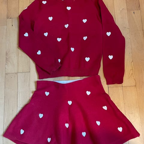 Tunikaen på billede 4 har kun været brugt 1 gang til jul. Kan bruges over et par strømpebukser eller leggings - især fin til jul.