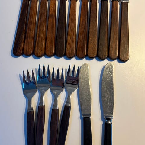 Bestik, Holder i teaktræ med knive, Retro