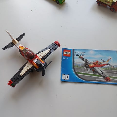 Lego City kunstflyvningsfly med følgebil med diverse udstyr. Desuden to Lego-mænd. Meget fin stand. Alle klodser medfølger sammen med original kasse og de to originale samlevejledninger. Fra røg- og dyrefrit hjem. Sender gerne med GLS for 47 kr.
