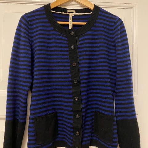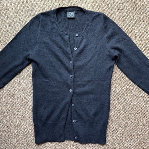 Cardigan, Life is Cashmere, str. 36, Blå, Næsten som ny, 100% cashmere, kun brugt få gange, blå, med stofbetrukne knapper. Kan bruges knappet helt op, men er også virkelig flot, hvis de øverste knapper holdes åbne. Kommer fra ikke ryger hjem. Nypris var kr. 1.300.