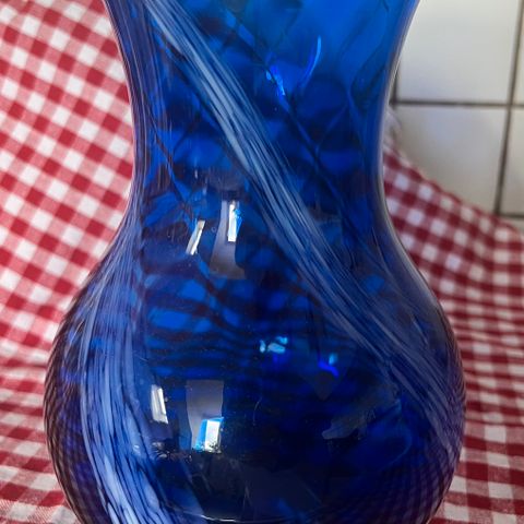 Kobolt blå og flot “knækmærke” i bunden og nærmest finsk “frozen glas look”