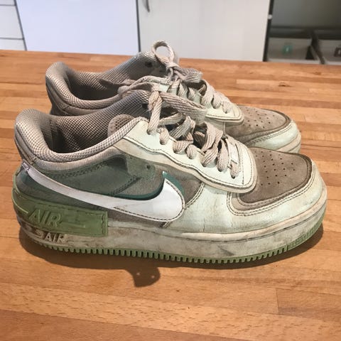 Sneakers Nike Air Force 1 str. 37,5. De er næsten ikke brugt og er nærmest så fine som nye. Ifølge Nike passer skoene til fodstørrelse 22,9 cm målt som på foto 9. Ann. nr. D131
