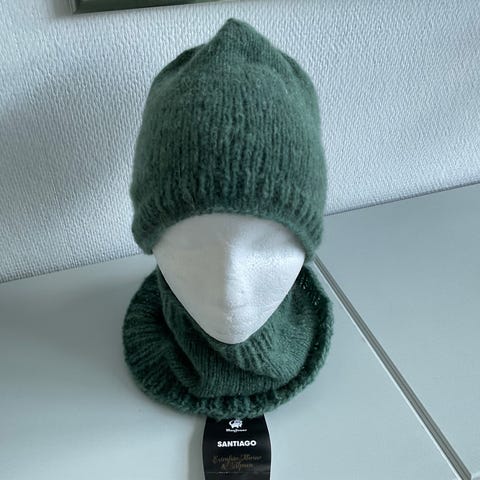 Hue, Hue og halstørklæde fra Læsø strik , Læsø strik , str. Onesize , Grå creme , Uld , Ubrugt