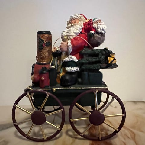 Julemand I bil figur, Ca. 15 cm. lang og 12 cm. høj.