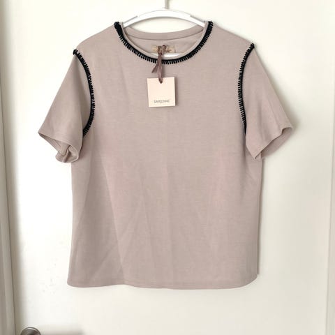 Gestuz sort, kortærmet t-shirt i størrelse S. Blusen har aftagelige skulderpuder og er pyntet med elastiske rynkesyninger. 95% bomuld og 5% elastan. Style: ArianaGZ ss tee. Brugt få gange, næsten som ny Nypris: 399kr