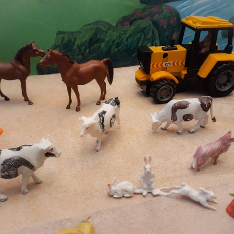 Legetøjsdyr, Legetøjsfigurer, Bondepige, Lege Dyr, Legetøj Traktor med Traktorfører, Bondefigur, Dekoration Figur, Hest, Ko, Kalv, Får, Lam, Gris, Ged, Høns, Gæs, Kanin, Dekorationsdyr, Bondegårdsleg, Sandkasselegetøj, Bondegård Tilbehør