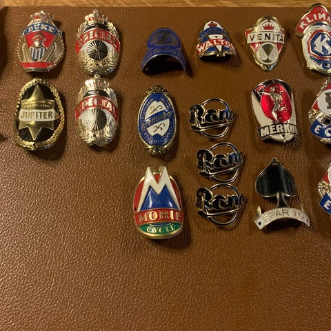 Gammelt / antik solidt emblem / kronrørsmærke til cykel eller lign?