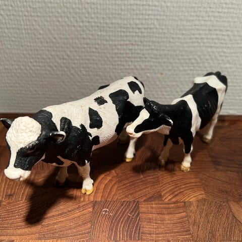 Samlefigurer, Schleich Tyr & Ko, 2 Dyr - Ko og Tyr - fra Schleich sælges. Fast samlet pris. Med naturlig patina. Stand fremgår af billederne. (Lot Tyr og Ko)